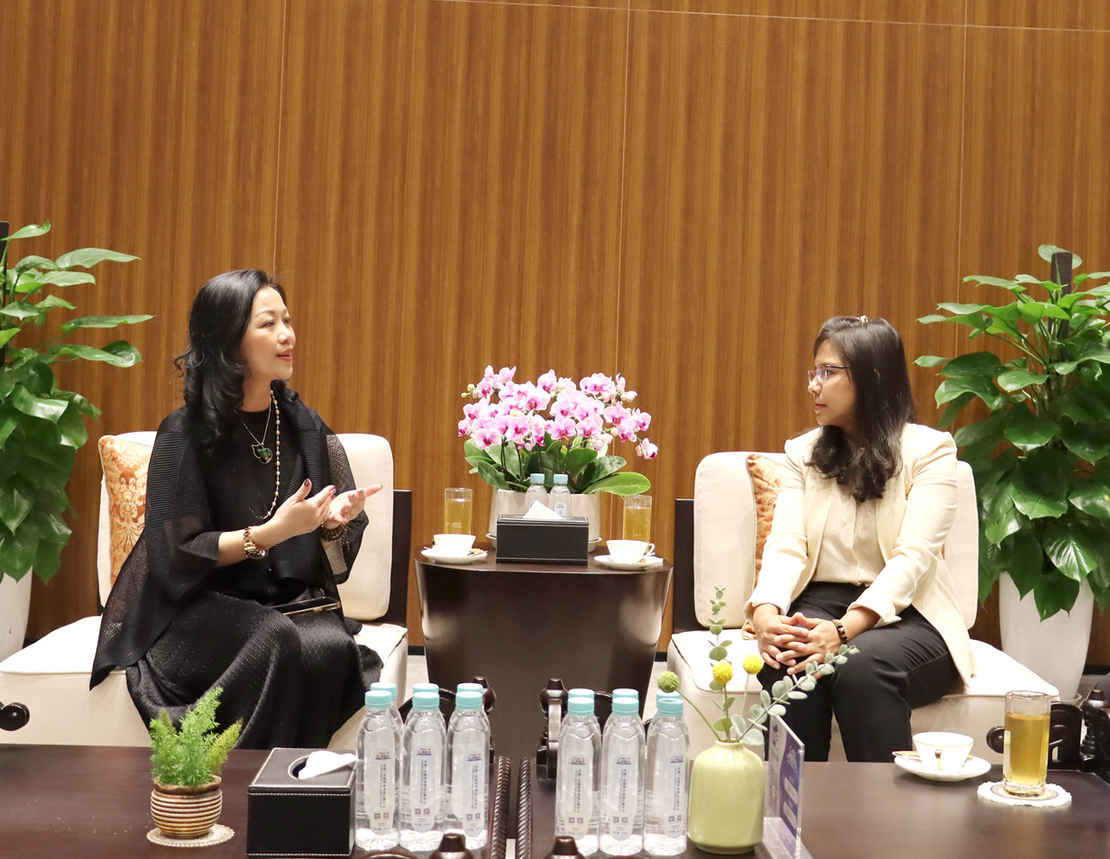 4月25日上午,緬甸駐南寧總領(lǐng)事館商務(wù)參贊高凱玨到中國—東盟特色商品匯聚中心參觀(guān)考察,并與中國—東盟特色商品匯聚中心董事長(cháng)趙海燕就進(jìn)一步深化中緬經(jīng)貿合作等進(jìn)行了座談交流。