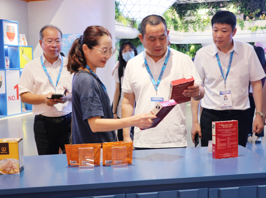 在匯聚中心,考察組全面了解項目的目標定位等情況。民建中央外聯(lián)委員會(huì )、民建福建省委外聯(lián)委主任、全國物流行業(yè)商協(xié)會(huì )聯(lián)席會(huì )議總干事,廈門(mén)市現代物流業(yè)商會(huì )會(huì )長(cháng)、華瀚通商(廈門(mén))投資管理有限公司執行董事蔡遠游表示,匯聚中心獨具特色的創(chuàng )新理念令人眼前一亮。項目匯集了RCEP區域國家、“一帶一路”沿線(xiàn)國家的特色商品,通過(guò)線(xiàn)上B2B、B2C平臺完成交易,實(shí)現以“物”引“流”,以“物”促“流”,與中新物流園形成聯(lián)動(dòng)效應,二者相互促進(jìn)、良性循環(huán),未來(lái)發(fā)展大有可為。他希望通過(guò)本次考察交流,進(jìn)一步加強隨行企業(yè)與中新物流園和匯聚中心的聯(lián)系,結合物流行業(yè)發(fā)展趨勢和各自的優(yōu)勢,達成合作。