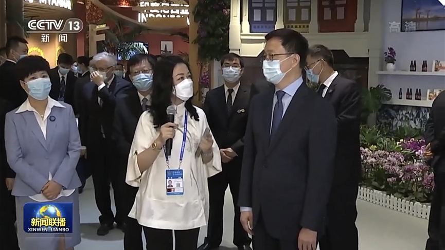 韓正副總理邊走邊看并詳細詢(xún)問(wèn)關(guān)于各東盟國家特色精品,在聽(tīng)取趙董事長(cháng)對于匯聚中心平臺的建設理念,特別是將釋放中國—東盟博覽會(huì )溢出效應,由4天延伸至365天做法表示高度贊賞,同時(shí)也對于匯聚中心將助推中國與東盟乃至RCEP其他區域國家經(jīng)貿合作水平,提升貿易和投資自由化、便利化表示了肯定。
