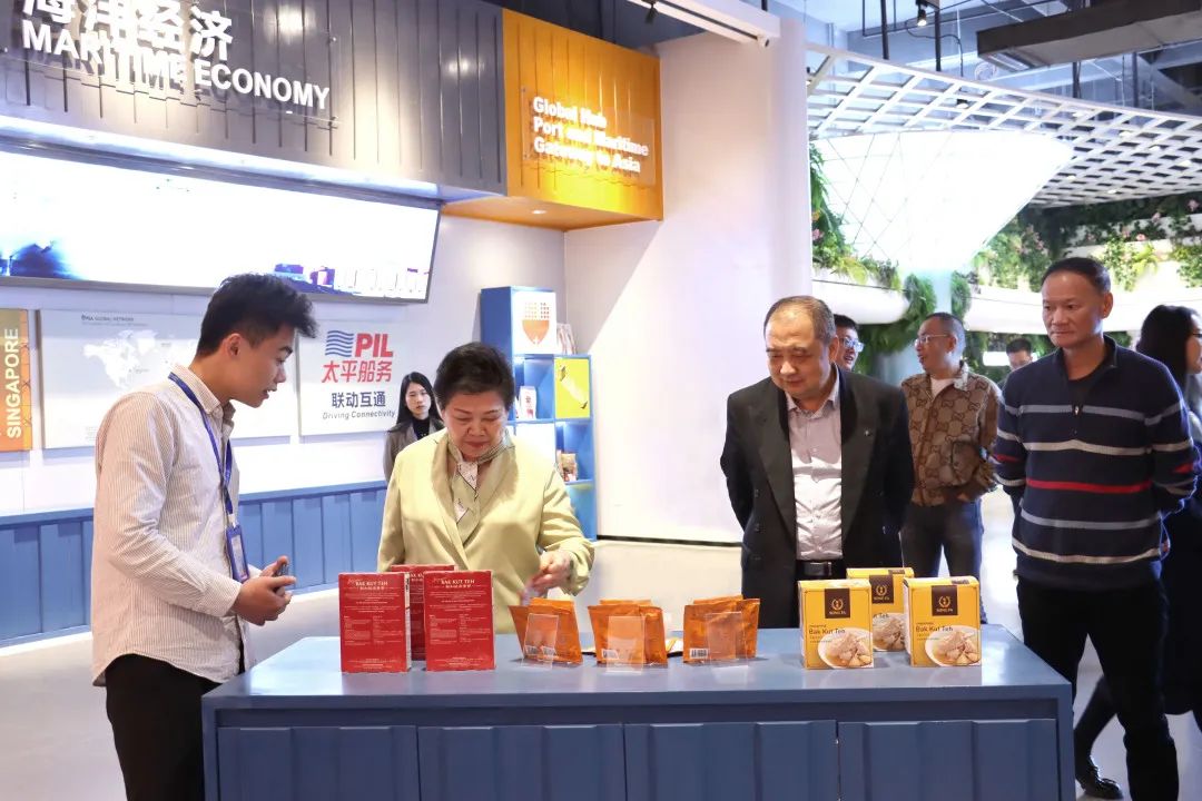 位于園區內的中國—東盟特色商品匯聚中心,是中新南寧國際物流園與中國—東盟博覽會(huì )秘書(shū)處聯(lián)合重點(diǎn)打造的項目,致力于搭建中國與東盟、RCEP其他區域國家乃至“一帶一路”沿線(xiàn)重要國家經(jīng)貿往來(lái)線(xiàn)上線(xiàn)下一站式首選平臺。在參觀(guān)匯聚中心的過(guò)程中,考察團聽(tīng)取了展館的設計理念,對館內琳瑯滿(mǎn)目的特色商品表現出濃厚的興趣。認為匯聚中心線(xiàn)下展館不僅設計別出心裁,而且能夠通過(guò)線(xiàn)上平臺一站式購買(mǎi)各式東盟乃至RCEP其他區域國家的特色商品,比如新加坡的肉骨茶、泰國的醬料、澳大利亞的紅酒等,對商家及消費者來(lái)說(shuō)將是一種全新的沉浸式商貿體驗,同時(shí)匯聚中心提供的商品免費展示空間,能夠降低入駐商家的運營(yíng)成本,為企業(yè)提供了良好的服務(wù)平臺。