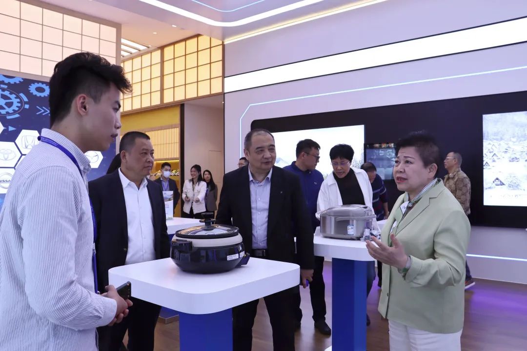 考察團在匯聚中心展館了解入駐產(chǎn)品情況